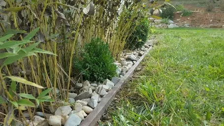 - Bordures en bois ou en pierre : Idéales pour structurer vos allées et parterres.