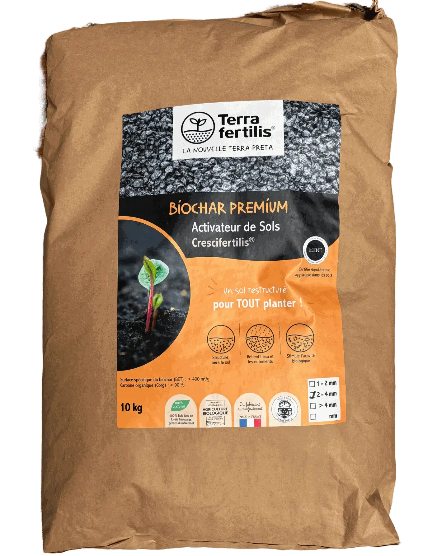 - Rétenteurs d'eau naturels : Biochar et capsules « grains d’eau » qui augmentent la capacité de rétention du sol en humidité.